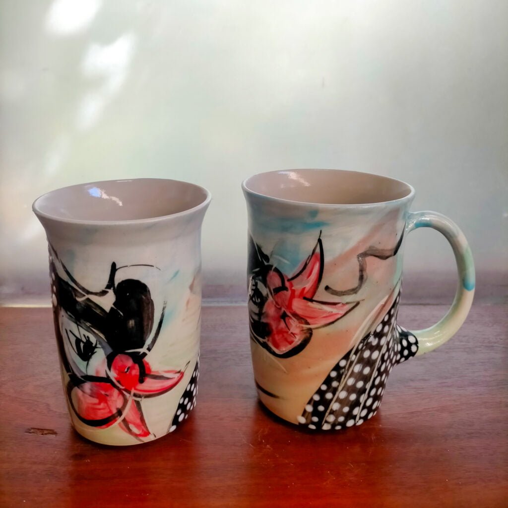 Individually crafted and painted stoneware mugs featuring my Spotted Fowl in the garden design. Mugs are dishwasher and oven safe and hold a sizable amount of liquid. Just great for that mid morning coffee.
