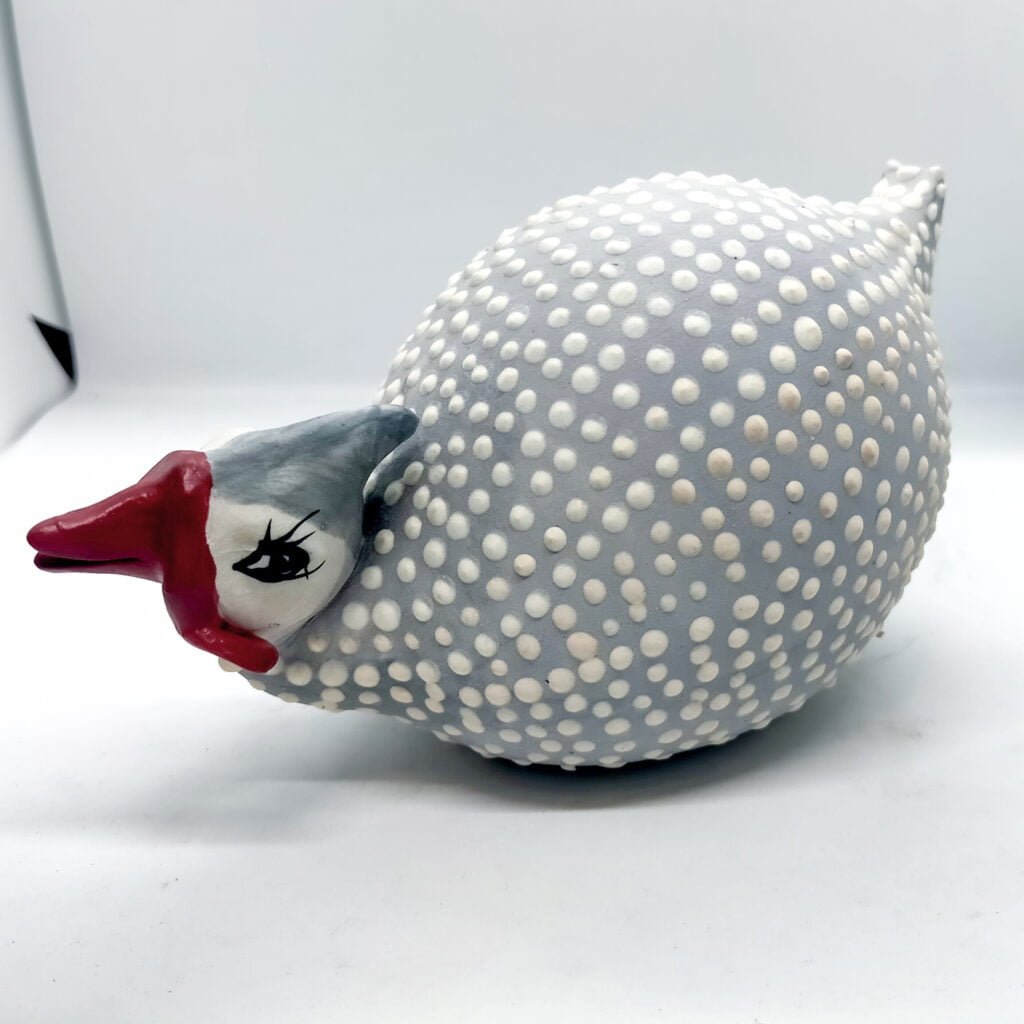 Spotted Fowl are now available in three colors and in the new style of cheeky crouching birds. These gorgeous fellows are a great addition to your growing collecting of Spotted Fowl. Please remember that each piece is individually made and painted so each bird will be different although obviously from the same family. Colors available are Black with white spots, Lavender with white spots and Cinnamon with white spots. If you have any queries I am keen for you to send me a message or phone me from clarity. Spotted fowl will most certainly brighten up your day!